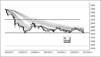 專家分析白銀價格未來的走勢和拋硬幣一樣難以預測。 今年7月銀價曾經達到過4200的水平,但近期隨著金價一同下跌,甚至在本周五暴跌3%,觸及3430水平的四年新低。 我們正經歷一個熊市的一半,可能在未來三到六個月內觸底,然后價格會有回升。 美元的強勁表現仍然會對貴金屬有所壓力。 紐約商品交易所白銀價格的下降趨勢是完全確立的長期下降趨勢。技術上講,白銀在3600附近打下了一個支撐基礎。雖然下降趨勢勢頭有所減弱,還沒有出現形成反彈并扭轉下降趨勢的技術或圖表證據。上方目標仍然很有限。技術上的下方目標還有待于接受下跌至3600附近的支撐位以下的考驗。對白銀的分析是有用處的,因為自2011年以來白銀價格的行為引領著黃金價格的行為,白銀價格會繼續起引領的作用。了解白銀給交易者在預期黃金價格行為時提供了一個領先的優勢。 白銀價格圖的重要特征是回落并對3600附近的支撐位多次試探。(注意圖中白銀價格是以美分為單位的)。3600附近的支撐位成功經受了第四次試探,確認了長期橫向盤整。白銀在5500附近有一個長期強壓力位。壓力已經在4500元附近形成,這是成功突破至當前位于4000元附近的長期組均線上邊緣之后的第一個目標。在這個市場中反彈的力量有限,這意味著反轉為上升趨勢的可能性較低。白銀的行為對于黃金來說也有著看空的意味。 倘若3600附近的支撐失敗,下方目標在2500附近。這是通過用交易帶的寬度從3600附近的支撐位向下投射計算得出的。突破至3600支撐位以下的行為對于白銀來說行情看空,對于黃金來說行情也非常看空。 ![]() 顧比復合移動平均線指標(GMMA)顯示出趨勢走弱的關鍵特征。 GMMA對交易者和投資者的行為進行追蹤。GMMA長期組發散得很開闊,這確認了賣出壓力在持續。當價格上漲時,投資者作為賣出者,GMMA長期組的持續發散顯示出這一點。他們的賣出行為將價格壓下,降低了反彈發展成為趨勢變化的可能。GMMA長期組保持開闊的發散,這吸收了價格上升的動能。2014年3月和7月白銀價格都受到了開闊發散的GMMA的壓制。 白銀在3600附近的行為將會如何對于預期黃金價格的活動提供一個提示。交易者密切關注白銀價格的發展,然后等待黃金價格行為的確認。 第一紙白銀分析網(http://www.zjtuoke.com/)為你提供白銀、白銀價格、紙白銀價格和白銀價格走勢圖等最新資訊,更多白銀價格敬請關注:第一紙白銀分析網