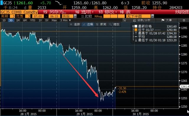 美國就業數據向好,市場避險情緒降溫,黃金創13個月最大跌幅,白銀創19個月最大跌幅。 周四,美國Comex四月到期的黃金期貨暴跌2.4%至1255.90美元/盎司,創2013年12月19日以來最大跌幅。三月到期的白銀期貨更是狂瀉7.3%至16.773美元/盎司,創2013年6月20日以來最大跌幅。 在美國聯邦公開市場委員會(FOMC)發布的決議聲明中,美聯儲由上次使用的“溫和擴張步伐”(moderate pace)調整為“堅挺擴張步伐”(solid pace)。市場據此認為,美聯儲2015年加息的前景恐怕仍然完好無損。 金融市場正集中關注美聯儲(FED)周三(1月28日)發布的決議聲明,使得大量投資者大舉做空貴金屬,白銀市場因而崩潰。 昨天公布的美國上周首申人數僅26.5萬人,創近15年新低,減緩了投資者關于美國經濟在今年初出現放緩的擔憂。美聯儲周三在聲明中也表示,經濟活動正在穩步擴張。 美國樂觀的經濟前景降低了市場的風險情緒,導致貴金屬吸引力下降。 據彭博,TD Securities高級大宗商品策略師Mike Dragosits表示:“市場預期美聯儲會更加鴿派,但結果令人失望。看起來金銀的多頭有些疲憊了。歐洲眼下也比較平靜,似乎沒有尋求安全的理由。” 三菱公司貴金屬策略師Jonathan Butler表示:“周四的下跌反映了美元走強,歐元疲軟的現狀。換句話說,市場在前段時間的避險買盤之后又恢復了常態。” 不過,同為貴金屬,白銀昨日的暴跌要遠甚于黃金。彭博數據顯示,現貨市場上黃金-白銀的比價暴漲了4.4%至74.54,創2011年9月23日以來最大漲幅。 查看更多紙白銀相關新聞請看:紙白銀行情新聞
