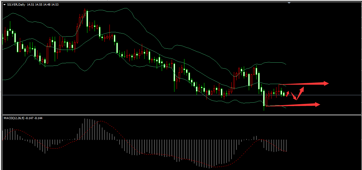 圖:白銀日K線(xiàn)(參考指標(biāo)MACD)