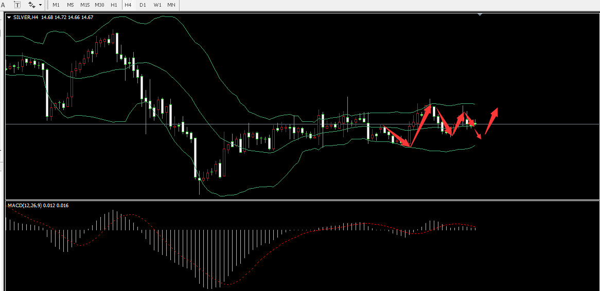 圖:白銀4h K線(參考指標(biāo)MACD)