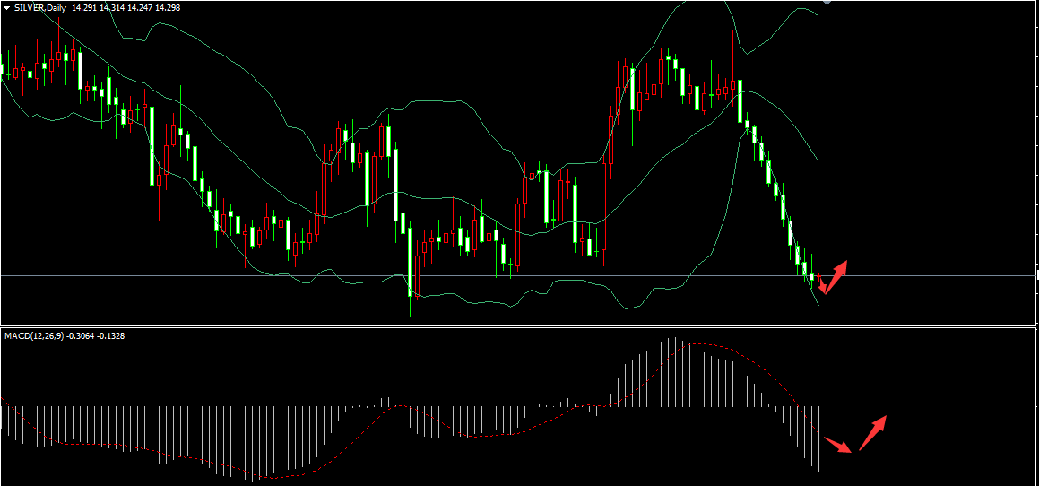 昨日白銀開盤后繼續走低,但是行情下跌幅度減小,在2.92一線遇到支撐出現止跌跡象。白銀在緩慢上漲2.98出現下落,晚間跌至2.92附近快速拉升,在出現一波誘多走勢立馬掉頭180度的回踩,尾盤收一根帶有下影線K線,在小時線上形成雙針探底形態。