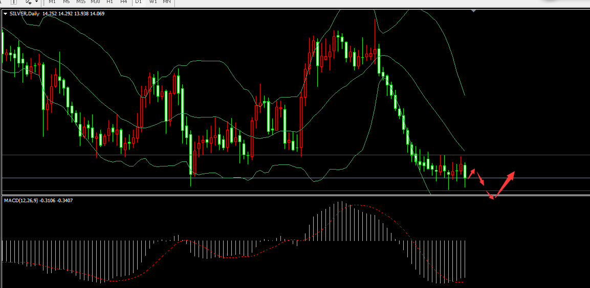 白銀上個交易日整體趨勢上屬于低位震蕩,盤面的極弱始終沒有帶來白銀價格的大幅走低,尤其是在黃金連續破低的情況下,白銀表現相當強勢。主要由于大趨勢上白銀更接近底部位置,目前的低位震蕩只是為了迎接美聯儲方面的加息動作.