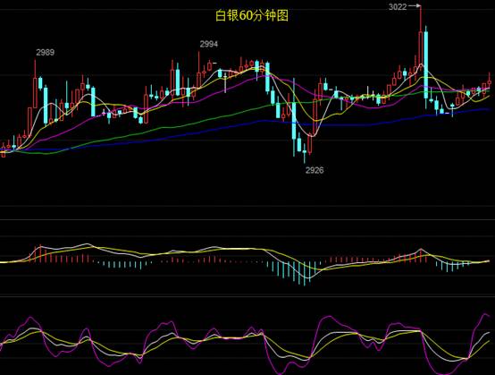 白銀繼續維持震蕩行情,最高價2962,最低價2981,現價2954。從60分鐘級別來看,5日均線與10日均線金叉;布林帶開口走平,目前運行于中軌附近,MACD位于零軸附近金叉,紅色動能增強,KDJ三線高位拐頭。今日仍然維持一個震蕩,建議區間操作。