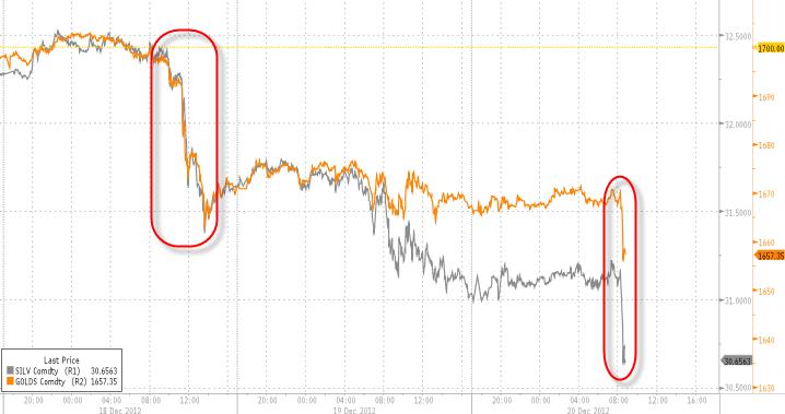 20日晚,金銀又雙雙跳水。zerohedge評論問:金銀又給鮑爾森綁架了?