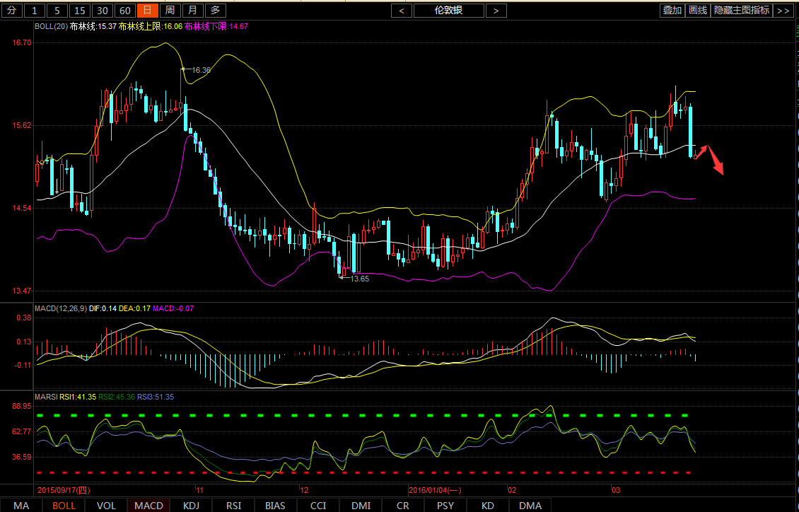 圖:白銀日K線(參考指標MACD)