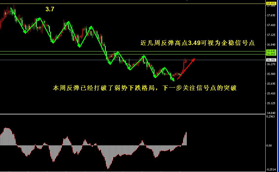 目前紙白銀價格是3.434元/克。本周紙白銀周初繼續向下回踩,不過在觸及大趨勢50%強弱支撐位3.32后得以反彈,加以周五美國非農數據意外大幅疲軟,刺激銀價在3.32上方獲得巨大買盤力量,行情最終收盤在壓力帶3.4~3.49范圍內。目前銀價雖未完全企穩反轉,但已經改變了之前弱勢下跌格局,預計銀價有望在未來時段圍繞支撐3.32上方形成震蕩并逐漸吸納更多買盤力量,此輪調整或已經接近尾聲,等待多頭完全恢復后,新一輪上漲即將來臨,屆時預計行情將再次沖擊3.7~3.82的中線阻力帶,投資者應做好分批布局多單的準備。如下圖所示為紙白銀4小時周期走勢圖,如圖中綠色箭頭所示,短線行情自3.7阻力以來便處于弱勢下跌格局,直至本周銀價回落至3.32強弱支撐位后,走勢出現了較大的反彈,目前已經突破了下跌行情的最后一浪。本周反彈結束了近期持續疲軟的弱勢下跌格局,但還未突破企穩信號點(企穩信號點為近幾周連續反彈高點3.49附近,突破此處將宣告多空力量發生徹底反轉),下一步投資者需密切關注信號點的突破情況。目前建議投資者下周可圍繞3.32上方分批加倉多單,若跌破3.32亦無妨,跌至3.26下方將遇到趨勢線支撐和密集支撐帶,可維持分批做多的思路,但應放棄高拋的策略。綜合分析,紙白銀本周過山車走勢在一定程度上扭轉了多空力量,雖然未完全反轉,但預計行情將在下周轉入震蕩并逐漸吸納買盤力量,為下一次拉升做準備。建議投資者可在行情處于3.32~3.4之間繼續加倉多單。下周初銀價不排除繼續在3.32~3.49內發生多次沖擊,此時一旦發生回落則是投資者加倉多單的良好時機。等待期真正突破3.49后,屆時多頭力量較為集中,恐難以再出現較大回落加倉機會,下周是投資者補倉的重要時段。以上建議僅供參考, 不作為下單依據。