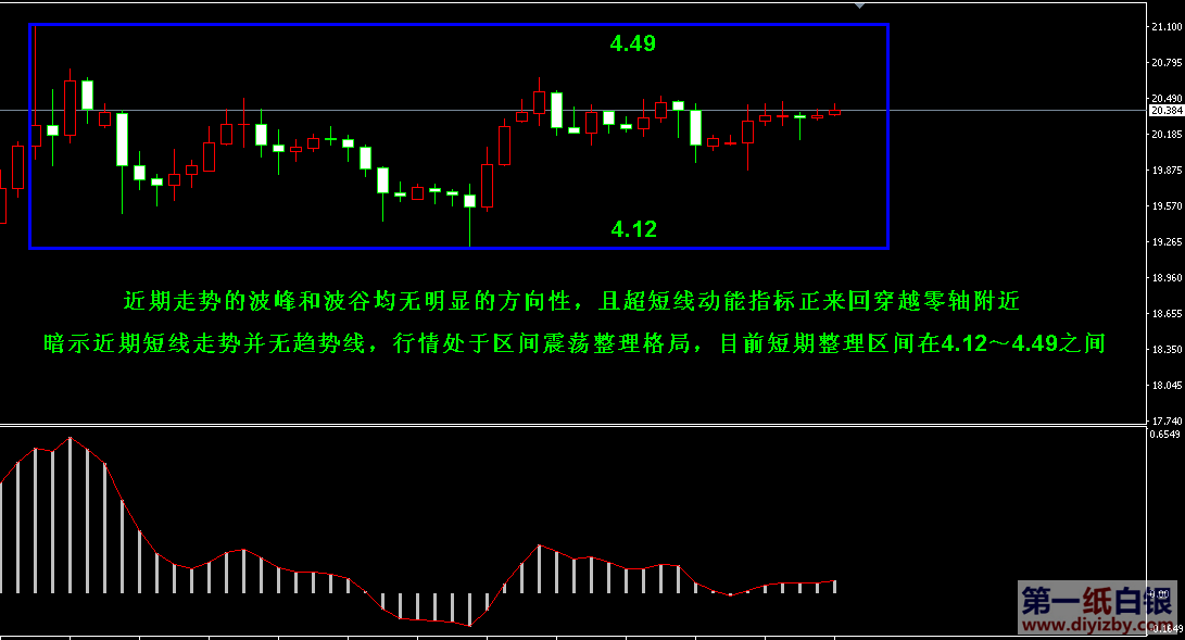 目前紙白銀價格是4.372元/克。昨日紙白銀繼續保持高位震蕩走勢,雖日線收陽,但短期買盤力量依舊不足,預計本周內行情暫時缺乏大幅拉升的條件,投資者在布局完畢多單后繼續保持觀望。如下圖所示為紙白銀日線周期走勢圖,近期銀價雖始終在高位震蕩整理,但買盤動能卻在持續減弱,如圖中綠色箭頭所示,在昨日行情觸底收陽的背景下,最終動能指標仍然維持向著零軸附近靠攏的走勢,顯示當前市場并無充足且持續的多頭力量支撐行情再度拉升。對接下來走勢作出逆向假設,如圖中藍色箭頭所示,假設行情在近期強行上漲,則由于動能指標MACD仍然處于收量狀態,此時將極容易發生所謂的頂背離形態(價格創出新高,但買盤動能未能創出新高),而頂背離形態是常見的見頂形態之一。因此,銀價此時若能維持高位震蕩或出現回落,則對于中長線看多者是最大的利好,反而若銀價出現拉升后再回落,則是較為危險的信號。基于此,近期走勢仍不可大幅追多,應在回調過程中分批介入多單,后市隨著買盤力量持續減弱,我們將尋求更佳的買入機會,其中4.2下方仍然是良好的多單加倉點位,投資者可重點關注4.17、4.12、4.04~4.05、3.96幾線,可在上述點位著重加倉。綜合分析,銀價調整修復的方式仍然以兩種形態為主,其一是通過時間換取空間的方式進行修復,此種情況價格大多維持橫盤整理,直至最終動能指標釋放完畢空頭力量并重新積蓄買盤動能;其二則是通過空間快速回調的方式修復,此種情況將盡最快時間,最大空間進行空頭力量的釋放,而后在低位支撐再度獲得買盤動能。目前來看,銀價可能維持第一種高位震蕩修復為主,此種情況或消耗較長時間,建議投資者保持充足耐心。(注: 由于紙白銀價格是國際銀價換算而來,而換算過程中涉及到人民幣對美元匯率的變化,即使在國際銀價不變化的情況下,如果人民幣貶值或升值,也會導致紙白銀價 格出現變動。因此,我們的分析只采用最新的國際銀價對應的人民幣白銀價格,如與過去分析價格有出入, 投資者應知曉其原因。)