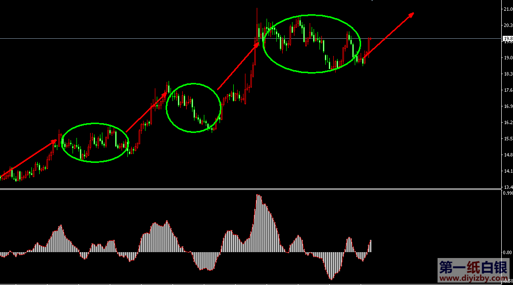 基本面方面:昨日的兩大重磅消息面日本央行和美聯(lián)儲利率決議基本符合預(yù)期,日本央行宣布維持利率在-0.1%不變。同時宣布采取額外行動,決定修改政策框架,引入新型QQE。 因日本央行繼續(xù)實施貨幣寬松政策,投資者對于全球經(jīng)濟(jì)寬松預(yù)期增加,令貴金屬提前步入漲勢。今日凌晨公布的美聯(lián)儲利率決議如期未能加息,雖然耶倫暗示年底很可能加息,但由于美聯(lián)儲下調(diào)了未來利率路徑預(yù)期和經(jīng)濟(jì)增長預(yù)期,投資者對于年內(nèi)加息仍存疑慮,市場雖預(yù)測12月美聯(lián)儲可能加息,但仍將根據(jù)屆時的經(jīng)濟(jì)恢復(fù)狀況決定,如若美國經(jīng)濟(jì)繼續(xù)復(fù)蘇緩慢,美聯(lián)儲亦有可能保留加息選項。因美日央行釋放了較為寬松的貨幣政策,且投資者對未來全球央行的貨幣寬松仍存擔(dān)憂,避險情緒快速爆發(fā),金銀價格短期內(nèi)仍具備繼續(xù)上漲的動能。今日消息面仍然較多,且由于美聯(lián)儲決議在凌晨公布,市場瀕臨休市,今日投資者仍將繼續(xù)消化該決議帶來的影響。投資者日內(nèi)可關(guān)注晚間20:30公布的美國9月17日當(dāng)周初請失業(yè)金人數(shù)、21:00公布的美國7月FHFA房價指數(shù)、22:00美國8月諮商會領(lǐng)先指標(biāo)月率、22:00美國8月成屋銷售總數(shù)年化。 提醒:以年初至今的波動來看,紙白銀的走勢頗具特點。如下圖所示為紙白銀日線走勢圖,圖中紅色箭頭為年初至今的主升浪上漲形態(tài),綠色圈為次級回調(diào)趨勢。其中主升浪速度均較快,且拉升幅度較大,但時間很短;而次級回調(diào)浪雖然時間較長,但回調(diào)幅度普遍較小,且速度較慢。投資者可抓住這一特點,在未來銀價波動過程中盡量在次級回調(diào)趨勢中布局多單,則點位最佳,而主升浪快速拉升見頂后離場多單。