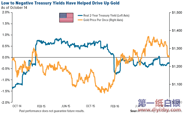 在度過40年來最好的上半年之后,黃金和白銀目前處于窄幅波動之中,因為投資者在等待美聯儲在12月提高利率的決定。最近的經濟數據,雖然尚不能完全肯定,似乎都指向這個方向,初始失業救濟人數在四年低點,自愿退出找工作人數在經濟衰退前的水平,家庭收入終于上升。 然而目前市場普遍認為,只要美聯儲不在短期內迅速加息,金銀價格將表現強勁,就好比2015年底美聯儲加息,推升了貴金屬迅速筑底后反彈。 美國國債收益率走低支撐金銀上漲 盡管黃金和白銀近期疲軟,但資金仍然在流入黃金ETF基金和白銀ETF基金,因為精明的投資者認識到,實際利率或通貨膨脹調整后的國債收益率仍然在負值。我使用2年期收益率,因為它為許多貨幣交易者所關注。 ![]()
