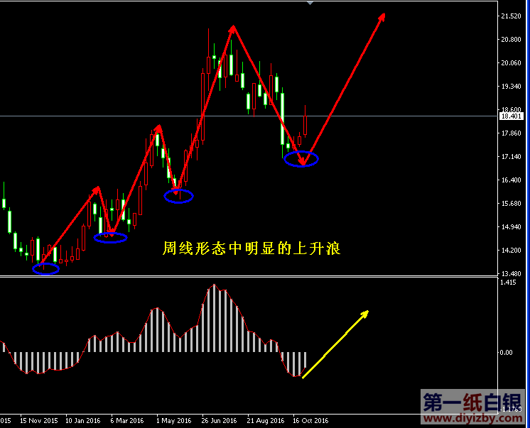 基本面分析:本周初由于希拉里“郵件門”事件而引發投資者對于美國總統大選不確定性的擔憂,令市場避險情緒回歸,一旦特朗普當選總統,則可能對美國經濟產生較大的風險,有望進一步推升貴金屬大漲,而美國總統大選將于下周二(11月8日)舉行,該事件將成為下周重點影響市場波動的消息。周內公布的美聯儲利率決議仍然維持預期不加息,但其釋放了較為鷹派的言論,暗示美聯儲12月加息概率增加,目前市場調查12月升息預期為80%,如果不出意外,則美聯儲在12月加息的可能性極高。另外,本周五公布的非農數據雖然不及預期,但增長較為穩健,且薪資和工時都有所增長,該數據支撐美聯儲12月升息的預期。具體數據顯示,美國10月非農就業人口+16.1萬,預期+17.3萬,9月由+15.6萬修正為+19.1萬;8月由+16.7萬修正為+17.6萬。美國10月失業率4.9%,預期4.9%,前值5.0%。下周美國11月8日大選結果撲朔迷離,讓美聯儲下月可能加息這一重大因素退居次席,以致于強勁的美國就業報告也未能影響市場走勢,建議投資者下周重點關注該事件。 下周紙白銀短線交易:短線行情正如上圖所示,目前銀價處于收縮三角形的中間范圍波動,但考慮到前期走勢已經回踩支撐確認企穩,并經歷了長期震蕩突破,后期行情繼續向上測試下跌趨勢線阻力的概率較大。不過下周的美國總統大選前后可能令市場反復波動,中途不乏銀價可能向下回踩支撐的情況,屆時若見到回落機會,則建議投資者仍然繼續加倉多單,止損3.67下方即可,后市目標將看至4.13、4.19~4.2兩線離場。之前說過,美國總統大選結果雖然不確定,但無論誰當選,當靴子落地后,對于貴金屬都將帶來利好。其原因是:特朗普若當選總統,可能會震動市場,從而迫使美聯儲推遲加息計劃,令市場避險情緒短期內大漲,推升金銀迅速走高;而希拉里當選總統,將導致政府提高支出,并令通脹加速預期上升,令美聯儲升息步伐更加艱難,投資者可能因為該預期而提升避險,令金銀緩慢上行。 下周策略:前期多單保持持有,回落繼續采取分批加倉方式布局,重點在3.78~3.87范圍內補倉,目標看至4.13、4.2附近。 下周紙白銀中線交易:中長線投資者目前持有不超過9成倉位即可,繼續保持觀望,等待未來銀價突破下跌趨勢線后可將剩余倉位全部跟進。若銀價首先觸及阻力4.13、4.2,則保守者可先檢查1~3成倉位,而后若見回落可重新補倉進場。由于目前銀價處于兩條中期趨勢的包圍范圍之內,短期走勢并不會立即進入單邊行情,銀價反復波動的可能性較大,此時中長線通過高拋低吸的方式可拉低持倉均價,向上突破后可全倉跟進。 下周紙白銀關注重點:美國總統大選、EIA、IEA月度報告、紙白銀技術面。 下周紙白銀多空震蕩預計: 多-空-震蕩=4:2:4 下周紙白銀重要支撐阻力: 阻力:4.13、4.19~4.2。 支撐:3.87、3.78、3.67附近、3.5~3.53附近。 下周提示:如果把周期放的更大一些,我們便能清晰的看清楚當前的走勢特征,對于投資者操作起到幫助。如下圖所示為紙白銀周線走勢圖,從2016年初至今,銀價雖然漲漲跌跌,但實則維持了良好的“進三退二”形態,圖中紅色箭頭顯示過去幾輪上漲幅度均大于回調幅度,是上升形態的教科書式的案例。其中藍色圈為銀價每次回踩的支撐位,均為跌破前一浪支撐位,說明其走勢正像波浪一樣維持中線上漲。依據這樣的規律,此輪銀價在3.67筑底后,后市大方向必然還是再度上行,雖然受到日線下跌趨勢線壓制,但最終向上突破概率較大,突破后將開啟新一輪拉升,有望突破年度高點4.5再創新高。由于下圖是周線走勢圖,一根K線代表一周,并不排除這一系列行情可能發生在2017年初的可能性。另外,從動能指標來看,當前動能正逐漸收量,暗示后市仍有進一步多頭復蘇的希望。