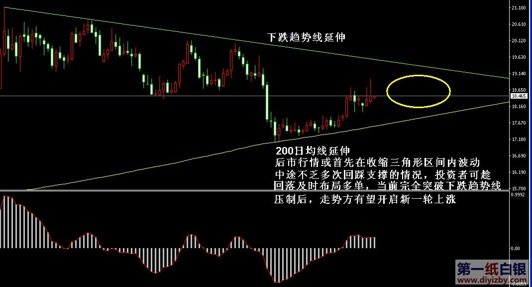 目前紙白銀價格是4.006/克。因特朗普當選美國總統(tǒng)的黑天鵝事件令短期市場避險情緒大漲,昨日紙白銀出現(xiàn)大幅拉升,最高漲幅超過5%,不過很快銀價又走出沖高回落的走勢,顯示短線多頭力量并不持久和充分,當其再次高位遇阻后,隨著空頭增強,多頭倉位紛紛獲利了結(jié),成為打壓銀價回落的重要因素。正如我們之前所說,美國大選僅僅影響短線行情的快速波動,當市場消化該消息后,行情有望逐漸回歸技術面形態(tài)。如下圖所示為紙白銀日線走勢圖,后市行情預計將繼續(xù)在圖中所示的三角形區(qū)間內(nèi)波動,其中三角形下沿是200日均線的延伸段,過去銀價始終圍繞200日均價緩慢上行,故而投資者可將該均線的延伸支撐作為未來走勢維持強勢的參考標準;三角形上沿是日線下跌趨勢線的延伸段,由于自7月以來,行情始終處于該條趨勢線下方波動,該下跌趨勢線對行情具有中期壓制作用,后市投資者可以銀價是否突破此下跌趨勢線,作為判斷行情轉(zhuǎn)入上漲的判斷標準。從目前的價格來看,銀價正處于區(qū)間內(nèi)的中間點位波動,不論向上還是向下,均有一定空間,此時并不建議投資者大幅追多,可待行情回落過程中分批布局,在守穩(wěn)200日均線3.78的基礎下,跌幅越大,則加倉幅度可逐漸放大,后市目標便看至圖中三角形區(qū)間上沿的阻力4.19~4.2附近。綜合分析,200日均線支撐是銀價的中長期支撐,已經(jīng)經(jīng)歷了下跌回踩考驗,而下跌趨勢線阻力為銀價的日線阻力,尚未經(jīng)歷沖高考驗。因此后市我們更加傾向于銀價首先向著下跌趨勢線靠近,而后才會沖高回落后在區(qū)間內(nèi)震蕩一段時間。因此,近期思路仍以布局多單為主,不過并不建議大幅追多,而是回落分批加倉為宜。等待后市行情沖高4.19~4.2的下跌趨勢線壓制后,短線多單可全部離場。(注: 由于紙白銀價格是國際銀價換算而來,而換算過程中涉及到人民幣對美元匯率的變化,即使在國際銀價不變化的情況下,如果人民幣貶值或升值,也會導致紙白銀價 格出現(xiàn)變動。因此,我們的分析只采用最新的國際銀價對應的人民幣白銀價格,如與過去分析價格有出入, 投資者應知曉其原因。)