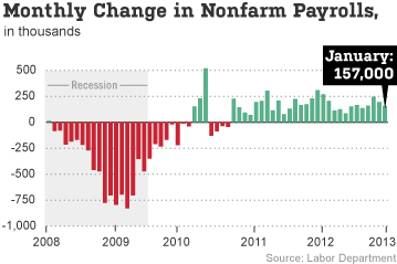 美國1月非農(nóng)就業(yè)人數(shù)增加15.7萬,預期增加16.5萬,12月數(shù)值從15.5萬修正為19.6萬。