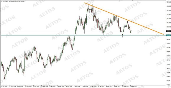 昨日DXY最高100.03,最低99.65,日內小幅上揚。上周五晚間美國發布了4月Markit美國制造業采購經理人指數,52.8的實值低于53.8的預期值和53.3的前值,同時間發布的服務業采購經理人指數錄得實值52.5,同樣低于該數據預期值53.5和前值52.8,受數據影響,當時美元指數承壓下跌。不過因為稍后發布的3月舊宅銷售和3月現房銷售數據良好,遠高于預期值和前值,也使得美元指數擺脫PMI數據的影響,沖擊日內高點。從技術圖形上來看,DXY在日線圖上得到頸線支撐,但目前因為空方施壓不斷逼近該支撐位,從2017年以來,DXY制造高點的能力不斷向下,也使得美元指數在日線圖上呈現出下降楔形,需要預防突發性事件影響DXY突破關鍵價位的情況。中長期的美元指數走勢仍然取決于美國政局的基本面。短期看來,美元指數上方阻力:101.0,下方支撐:99.0。![]() 法國大選于北京時間周日凌晨開始記票,截止筆者發稿時,馬克龍以得票率23.82%領先,勒龐以21.58%的得票率緊隨其后,總共記票4597萬張,占比95.56%。目前的情況來看,馬克龍和勒龐將進入5月7號舉行第二輪選舉。由于左翼領導人馬卡龍得票領先,黃金應聲大跌,開盤一度下挫至$1264/盎司,創出4月11號以來的新低。雖然勒龐也進入了第二輪投票,但是目前來看仍然是親歐派領先,并且在第一輪失敗的候選人菲永已經站在了馬克龍這邊,公開表示希望選民支持馬克龍。所以勒龐在第二輪投票中擊敗馬克龍的可能性并不大。從技術角度分析,黃金下探受到5周線支撐,目前的阻力位仍然在$1295/盎司。上升通道下軌目前在$1235/盎司附近,黃金有可能繼續回調至這個點位附近,但是鑒于近期歐洲政治風險較大,黃金下跌的動力不強。所以很有可能繼續維持著窄幅震蕩的格局。 查看更多紙白銀相關新聞請看:紙白銀行情新聞