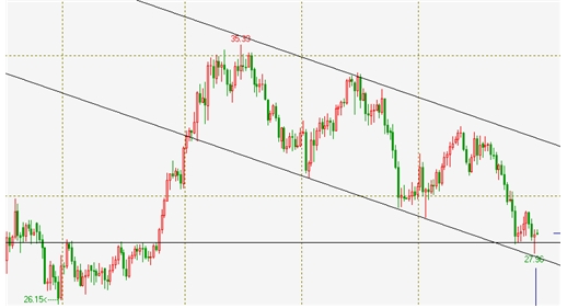 就技術(shù)面而言,白銀到目前的走勢位置基本沒有出現(xiàn)重大的特殊變化,整體上還是在依托日線級別自去年35.39高點(diǎn)以來形成的下降通道和28.4 上下的前期水平支撐線這兩個主要的日線級別的技術(shù)因素在運(yùn)行,盤中雖然幾度上下,但是從大格局上看,上面仍然受到長期上升趨勢線的反壓制作用,難以逾越,下面有面對著兩個日線級別的技術(shù)支撐,白銀在上周的整體運(yùn)行基本就是在這樣一個相對狹窄的區(qū)間內(nèi)波動,接下來的一段時(shí)間白銀在整體偏空態(tài)勢未改的基本框架下,在這個上下技術(shù)位的夾縫之家繼續(xù)震蕩的可能較大,短線看白銀有企穩(wěn)的跡象。