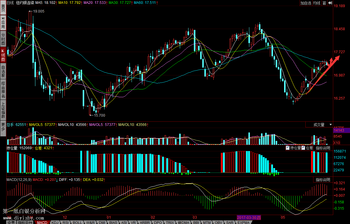 圖:白銀日K線(參考指標(biāo)MACD)