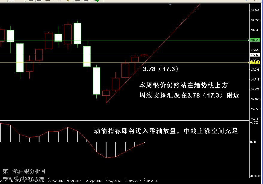 技術僅僅是基于概率論和統計學的一種綜合分析手段,絕非預測。所以技術分析是在考慮做好止損的情況下去博取大概率事件,投資不可過于迷信技術分析。(短線操作請一定做好止損,一旦被損,代表分析師基于概率和統計的技術分析不適用于當前行情) 1、紙白銀短線看點位,中線做方向。 2、以上所有價格為工商銀行買入價,即紙白銀低價。進倉點位要再加0.04,出倉則不要。 3、第一紙白銀給出的所有建議僅供投資者參考,不作為下單絕對依據,切勿過于依賴。 4、北京時間07:00發布此文章。 5、上一交易日白銀價格分析情況:(6月2日)白銀繼續震蕩還是強勢拉升 非農指引方向