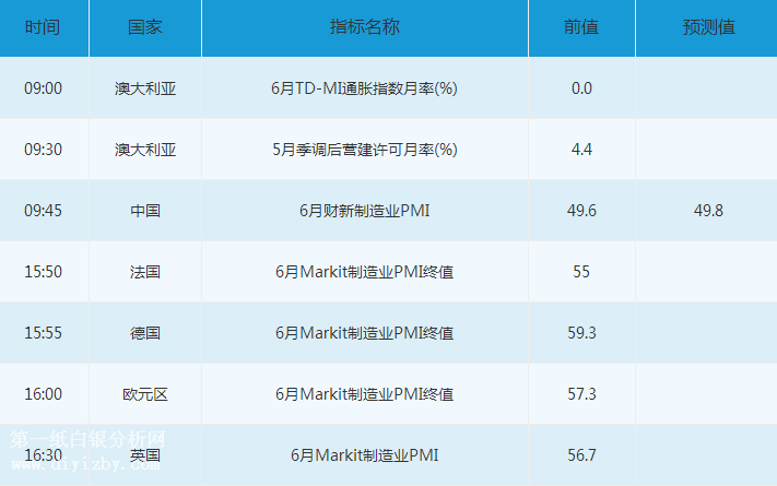 7月3日亞洲時(shí)段,投資者首先要關(guān)注各個(gè)品種開(kāi)盤(pán)的走勢(shì)情況,然后關(guān)注澳大利亞的兩項(xiàng)數(shù)據(jù),這兩項(xiàng)澳大利亞數(shù)據(jù)會(huì)給澳元的短線走勢(shì)帶來(lái)一些波動(dòng)。接著,投資者重點(diǎn)關(guān)注中國(guó)財(cái)新制造業(yè)PMI數(shù)據(jù),該數(shù)據(jù)會(huì)給早間亞洲市場(chǎng)的市場(chǎng)情緒帶來(lái)重要影響。