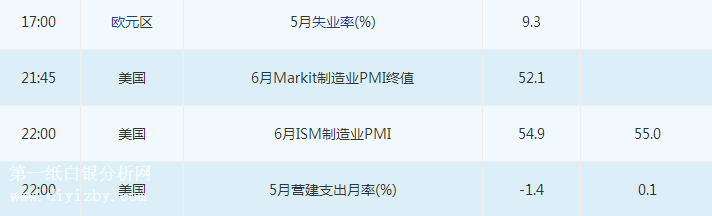 紐約時(shí)段,重點(diǎn)關(guān)注美國(guó)的ISM制造業(yè)PMI,該數(shù)據(jù)將會(huì)給晚間美元的走勢(shì)帶來(lái)沖擊,另外美國(guó)的Markit制造業(yè)PMI和營(yíng)建支出也要留意。不過(guò)由于美國(guó)獨(dú)立日,美國(guó)市場(chǎng)提前休市、加拿大市場(chǎng)也因?yàn)榧幽么笕招菔幸蝗眨显摃r(shí)段市場(chǎng)交投可能會(huì)較為清淡。
