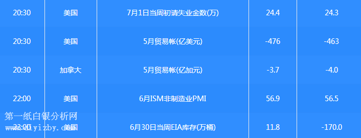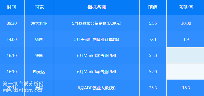 紐約時段,市場又迎來一系列美國重磅數(shù)據(jù)的考驗,這些數(shù)據(jù)中包括美國的就業(yè)數(shù)據(jù)小非農(nóng)ADP和初請失業(yè)金人數(shù),這兩項就業(yè)數(shù)據(jù)會給周五的非農(nóng)數(shù)據(jù)提供重要的指引。此外,美國的貿(mào)易帳、ISM非制造業(yè)PMI都能給市場帶來一定的影響。時段內(nèi),美聯(lián)儲理事鮑威爾還會發(fā)表言論,投資者稍加留意即可。