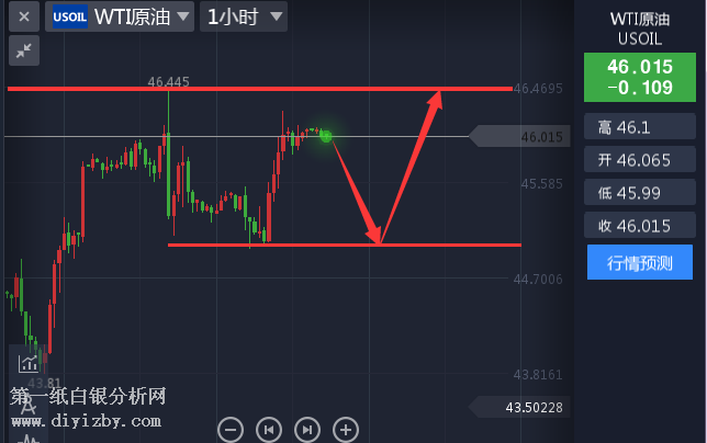 原油昨日還是一如周三一般,亞盤行情平靜,只有小幅的震蕩,在亞盤尾盤時(shí)候,原油似乎有開始選擇方向動向,在突破45.6一線失敗后,反彈震蕩下行,在下探至45一線附近后受支撐反彈,后連續(xù)的震蕩行情,直到歐盤尾盤,原油才真正選擇方向,在沒有消息面的刺激下,原油主力生產(chǎn)過借機(jī)出貨,使原油出口量暴增,提漲了油價(jià);原油在連續(xù)上沖之后,與46.3附近反彈下行,后保持震蕩小幅上行的走勢,最終46.1附近收小陽收盤。日線上看,布林帶開口向下收縮,K線運(yùn)行與布林帶中軌上方有向上軌運(yùn)行的趨勢,各項(xiàng)均線有粘合趨勢,KDJ三線粘合向上,MACD快慢線開口向上有二次發(fā)散趨勢,紅色能量柱增加,多頭趨勢加強(qiáng);從四小時(shí)線上看,布林帶開口向上發(fā)散,K線運(yùn)行于布林帶上軌與中軌之間,各均線開始粘合,KDJ三線金叉向上發(fā)散,MACD快慢線開口向上發(fā)散,紅色能量柱增加,多頭趨勢加強(qiáng);從小時(shí)線上看,布林帶開口微微向上發(fā)散,K線緊貼布林帶上軌運(yùn)行,KDJ三線開始粘合,MACD快慢線開口向上開始收縮,紅色能量柱減少,多頭趨勢減弱。綜合來看,目前多頭趨勢稍占優(yōu)勢,操作上建議短期以低多為主