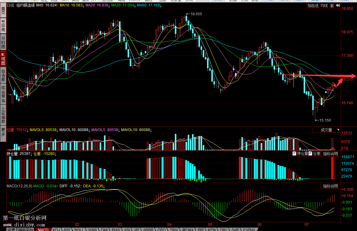 圖:白銀日K線(參考指標MACD)