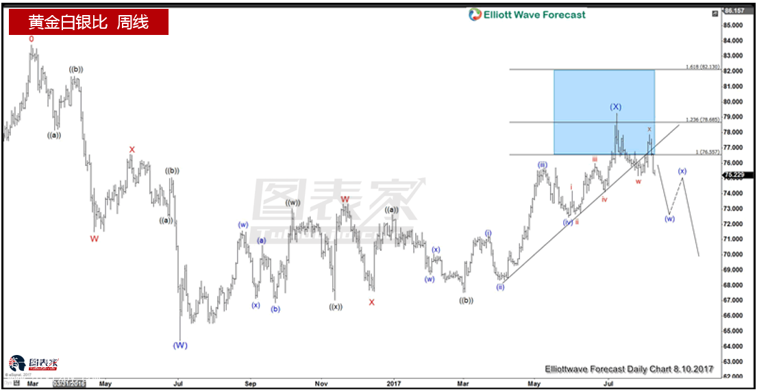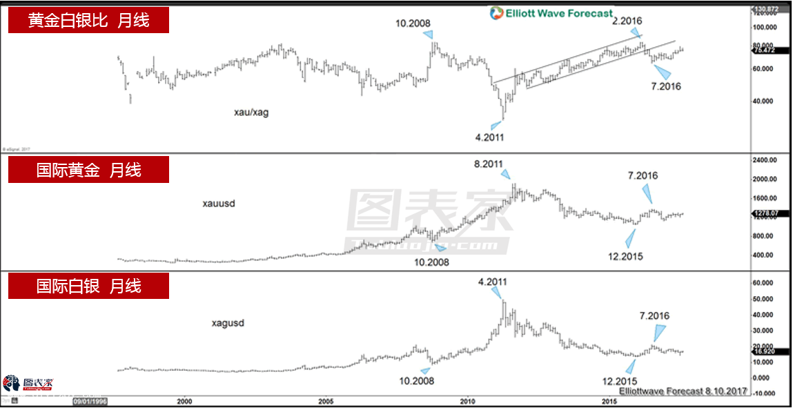 剛剛過去的兩周時間里,黃金和白銀迎來了一波強勢上漲,這波強勢上漲被視為2017年下半年的牛市行情的開啟。不僅僅是消息面下半年將繼續推升避險情緒,利多貴金屬,技術面的黃金白銀比例可能走低,也暗示金銀將獲得支撐上線。 2017年下半年支撐黃金白銀上漲的消息面: 首先是朝鮮局勢 上周朝鮮和美國的“親密互動”引爆了整個黃金市場,是上周金銀價格暴漲的主要功臣,然而這樣避險情緒來的塊走的也快,不過即使如此,只要朝鮮問題一朝沒有解決,像上周一樣的行情在未來可能會時常發生。駐倫敦的獨立貴金屬研究公司Metals Focus Ltd分析師Chirag Sheth在接受從采訪時稱,“目前基本面對金市十分利好,朝鮮的一舉一動都能幫助金價升破1300美元水平,甚至維持在該水平上方。白銀有望圖片17.5美元的阻力水平。” 而伴隨著朝鮮的局勢進一步升級,投資者將重返貴金屬市場以尋求避險,未來6-9個月金價可能升至1400美元/盎司,而白銀有望站在20美元/盎司上方。另外,盡管美聯儲處在加息周期,但因為通脹數據已經連續五個月疲軟,這讓美聯儲的態度不得不有所軟化,這對于黃金白銀來說將會形成進一步的支撐。 其次是全球債務危機 著名投資人羅杰斯在接受金之國采訪時表示,“我們很快就要目睹我一生中最可怕的災難了。”羅杰斯解釋說:“我們美國的經濟從立國時開始,就是大約每四年就會出一次問題,因此說我們有麻煩,絕不是什么不尋常的事情。”羅杰斯認為,導致2008年金融危機爆發的關鍵還是債務的膨脹,而危機之后,債務其實膨脹得更加驚人了。Algebris Investments的蓋羅最近曾經在一篇博客當中指出,在過去十年時間當中,全球債務總規模幾乎是翻了兩番,增長了276%之多,達到了217萬億美元。說到危機爆發的具體時間,羅杰斯認為最早可能明年就會兌現。 而這樣的危機必然導致整個市場的崩潰產生,此時黃金白銀價格將會在未來幾年將迎來爆炸性上漲。羅杰斯堅信貴金屬的終極避風港地位,這一點與另外一位著名投資人麥嘉華不謀而合,后者判定美國股市已經過熱,為了讓自己免受損害,正在購買黃金和白銀。 然后是特朗普的不確定性 此前我們有文章提到過今年特朗普可以說是造成黃金白銀價格上漲的主要功臣,上半年要不是特朗普不斷給黃金白銀提供支撐,面對美聯儲的瘋狂加息,恐怕黃金根本支撐不住。就拿這次朝鮮局勢升溫來說,也和特朗普脫不了關系,可以說正是因為特朗普的不確定性,才引發了當下局面的不可控制。 而且不僅僅是在朝鮮局勢上,通俄門所引發的國內政治危機,民調下滑所導致的美國民眾對美國未來的擔憂,都是和特朗普脫不了關系,如今在特朗普的運作下,美國和歐洲國家變的冷漠,和俄羅斯的關系也變的僵化,在國際市場上美國越來越邊緣化。這些特朗普的“杰作”在未來都可能成為引爆黃金市場的炸彈。 最后除了以上一些原因之外,在需求方面,有專家預期今年印度的黃金需求將復蘇,珠寶首飾銷量同比可能增長6%,而2017年印度黃金進口可能跳漲30%,最高能達到800噸。同時美國國會未能提高美國債務上限的可能性越來越大,導致技術違約、政府臨時關門,這使得美國對國家政治的擔憂越來越重,這些都將在未來成為黃金價格大漲的重要導火索。 2017年下半年黃金白銀比例走低暗示金銀價格上漲: 下圖為黃金白銀比以及國際黃金和國際白銀的月線圖。黃金白銀比與黃金價格以及白銀價格均呈負相關。 黃金白銀比在2008年10月-2011年4月下跌時,黃金和白銀均上漲。反之,當黃金白銀比在2011年4月-2016年2月上漲時,黃金和白銀價格均下跌。 由于目前黃金白銀比跌破上升通道下軌,其未來可能下行,這將支撐貴金屬價格走高。 下圖為黃金白銀比的周線走勢。黃金白銀比正處于自2016年2月29日高點83.68以來的調整周期,并且看起來已經在79.257處結束了(X)浪。由于價格近期的反彈低于79.257,因此若黃金白銀比維持在2016年2月29日的高點之下,則預期其將形成更大級別的3浪,至少回落至2016年7月4日的低點。 如果黃金白銀比確實下行,則預期黃金和白銀價格將在未來幾個月受支撐上行。 更多紙白銀相關新聞請看:紙白銀行情新聞