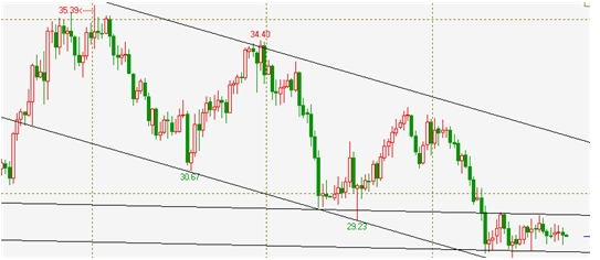就技術面而言,本次美聯儲的會議及相關聲明對于白銀的走勢影響有限,白銀目前的震蕩整理格局并沒有出現重大變化,就小周期的層面來看,白銀在小時級別上的對稱三角形的整理有向下運行的跡象,小周期走勢有偏空的跡象,美聯儲的會議聲明雖然繼續維持了現有的利率政策和寬松政策,但是整體偏暖的經濟表述還是給白銀在技術面上造成了一定的壓力,白銀的下挫也是市場多空力量在權衡判斷經濟之后的一種力量體現,就目前的整體情況看,白銀的震蕩仍在繼續,但似有偏空的苗頭出現。