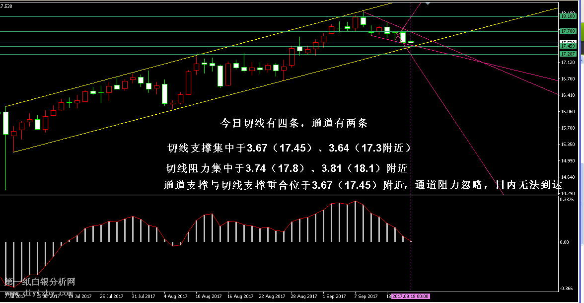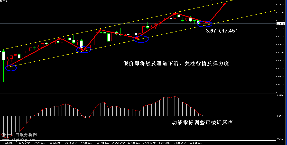 技術僅僅是基于概率論和統計學的一種綜合分析手段,絕非預測。所以技術分析是在考慮做好止損的情況下去博取大概率事件,投資不可過于迷信技術分析。(短線操作請一定做好止損,一旦被損,代表分析師基于概率和統計的技術分析不適用于當前行情) 1、紙白銀短線看點位,中線做方向。 2、以上所有價格為工商銀行買入價,即紙白銀低價。進倉點位要再加點差(各銀行點差不一),出倉則不要。 3、第一紙白銀給出的所有建議僅供投資者參考,不作為下單絕對依據,切勿過于依賴。 4、北京時間08:00發布此文章。 5、上一交易日白銀價格分析情況:(9月15日)白銀調整行情接近尾聲 具備隨時拉升潛能