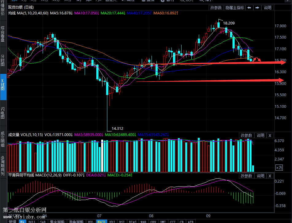 圖:白銀日K線(參考指標(biāo)MACD)
