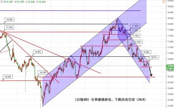 4:前期空單耐心持有,跌破16.5后下跌將更進一步靠近下降通道的支撐區(qū)域16.2-16.3位置!