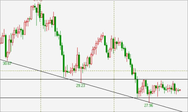 在前交易時段,白銀高見28.89,低見28.65,報收在28.76,下跌0.27%,現貨白銀方面下跌0.24%,報收在5792,白銀昨天的走勢可謂平靜如水,擴展而言,白銀在最近一段時間的走勢似乎也可以用靜水微瀾來形容,技術面上看白銀的箱體橫盤整理走勢已經延續一月有余,本次已經為期接近五周的橫向運動從時間上已經開始接近去年七、八月間的八周橫盤時間,多空雙方在目前區域看起來非常有耐心,一直保持著井水不犯河水的對峙局面,但是如果從較大級別的周期來看,白銀的整體走勢偏空,目前的橫盤整理過程仍然屬于大級別下降趨勢中的階段性整理過程,不過就短期而言,在技術操作上還是首先應當關注本 次28.3——29.3的箱體究竟會延續到什么時候。 黃金白銀昨日在沒有重要消息面驅動的情況下小幅震蕩前行,最終都以小陰線收場。今日仍無重要消息面,料黃金白銀將繼續震蕩前行,投資者輕倉區間操作為宜。 昨日黃金和白銀都小幅震蕩了一個白晝,晚間美國公布了美國1月S&P/CS20座大城市房價指數數據,數據顯示,美國1月S&P/CS20座大城市房價指數月率(季調后)為1%。市場預期0.9%。美國1月S&P/CS20座大城市房價指數年率(季調后)為8.1%,市場預期7.9%,實現2006年6月以來的最大的同比漲幅。美國2月新屋銷售為41.1萬,不及市場預期的42萬,環比下降4.6%。雖然新屋銷售環比下降,但卻同比上漲了12.3%。配合著房價的強勢上漲,美國房地產市場正在走向復蘇。路透表示,2月新屋銷售的下降主要由于一些主要地區的房屋市場供給不足。盡管房產市場的新屋存貨上漲了1.3%,達到152000戶,但仍處在最低存貨的警戒線內。穆迪經濟學家警告,如果房屋開發速度無法與房屋需求持平,這將會影響未來幾個月美國房市的復蘇進程。美國房地產數據雖好,但行情對此并不感冒,依然保持自己的小幅震蕩姿態。