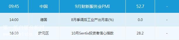 歐洲時(shí)段,投資者需關(guān)注14:00公布的德國8月季調(diào)后工業(yè)產(chǎn)出月率。此后,投資者可關(guān)注16:30公布的歐元區(qū)10月Sentix投資者信心指數(shù)。