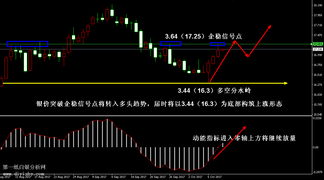 技術(shù)僅僅是基于概率論和統(tǒng)計(jì)學(xué)的一種綜合分析手段,絕非預(yù)測(cè)。所以技術(shù)分析是在考慮做好止損的情況下去博取大概率事件,投資不可過于迷信技術(shù)分析。(短線操作請(qǐng)一定做好止損,一旦被損,代表分析師基于概率和統(tǒng)計(jì)的技術(shù)分析不適用于當(dāng)前行情) 1、紙白銀短線看點(diǎn)位,中線做方向。 2、以上所有價(jià)格為工商銀行買入價(jià),即紙白銀低價(jià)。進(jìn)倉(cāng)點(diǎn)位要再加點(diǎn)差(各銀行點(diǎn)差不一),出倉(cāng)則不要。 3、第一紙白銀給出的所有建議僅供投資者參考,不作為下單絕對(duì)依據(jù),切勿過于依賴。 4、北京時(shí)間08:00發(fā)布此文章。 5、上一交易日白銀價(jià)格分析情況:(10月9日)白銀底背離觸底反彈 多頭轉(zhuǎn)強(qiáng)正醞釀反轉(zhuǎn)
