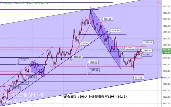 1:自月初非農探底回升,金價強勢打破了1281最后起跌點的阻力確認了弱勢格局的結束!