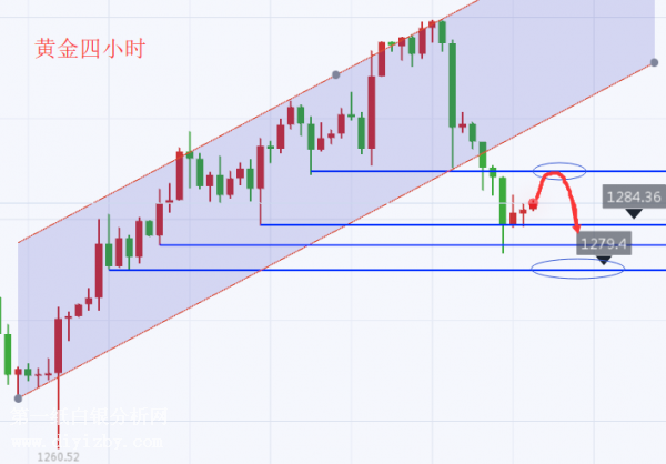 黃金從4小時的形態看,昨日的行情開盤在1294.8的位置后行情回踩給出1296.1的位置后行情受到基本面利空因素和技術壓力開始回落,4小時行程中陰線后行情延續下行,歐盤時段行情跌破前日低點1291.3的位置后行情加速下行,到美盤時段行情最低給到了1281.3的位置后行情受到支撐開始反彈,4小時形成啟明星后,日線最終收線在了1285.1的位置后,日線以一根下影線稍長的大陰線收尾,而這樣的大陰線收尾后,日線雙陰排列,如果跌破1281低點那么行情將開始轉勢,所以操作上在未給出反彈信號之前今日思路先空為主。