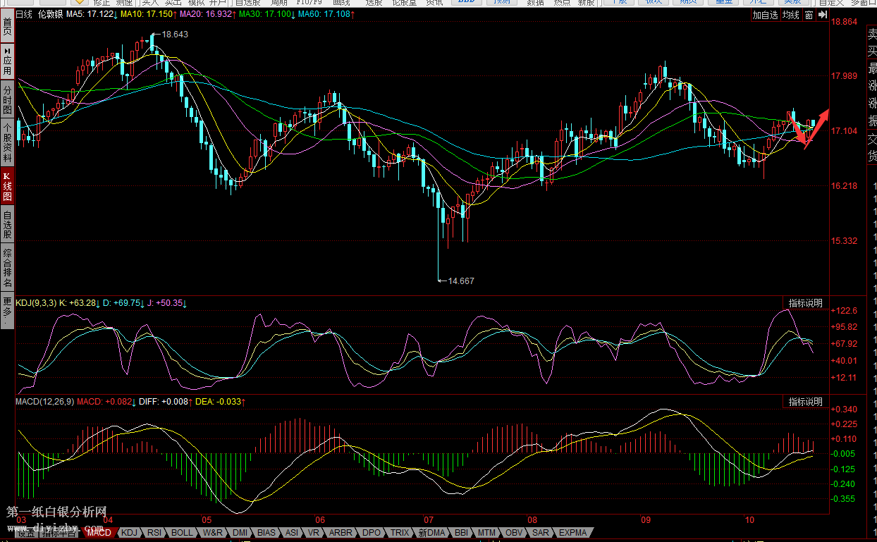 圖:白銀日K線(參考指標MACD)