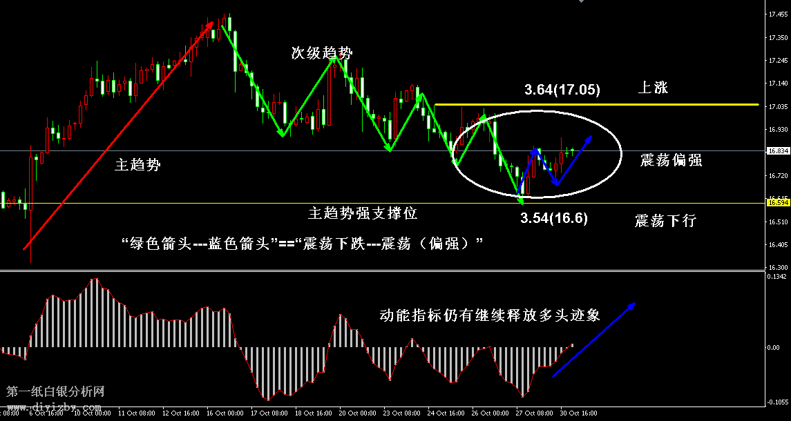 技術(shù)僅僅是基于概率論和統(tǒng)計(jì)學(xué)的一種綜合分析手段,絕非預(yù)測(cè)。所以技術(shù)分析是在考慮做好止損的情況下去博取大概率事件,投資不可過于迷信技術(shù)分析。(短線操作請(qǐng)一定做好止損,一旦被損,代表分析師基于概率和統(tǒng)計(jì)的技術(shù)分析不適用于當(dāng)前行情) 1、紙白銀短線看點(diǎn)位,中線做方向。 2、以上所有價(jià)格為工商銀行買入價(jià),即紙白銀低價(jià)。進(jìn)倉(cāng)點(diǎn)位要再加點(diǎn)差(各銀行點(diǎn)差不一),出倉(cāng)則不要。 3、第一紙白銀給出的所有建議僅供投資者參考,不作為下單絕對(duì)依據(jù),切勿過于依賴。 4、北京時(shí)間08:40發(fā)布此文章。 5、上一交易日白銀價(jià)格分析情況:(10月30日)白銀回踩強(qiáng)支撐 能否反轉(zhuǎn)需驗(yàn)證反彈力度