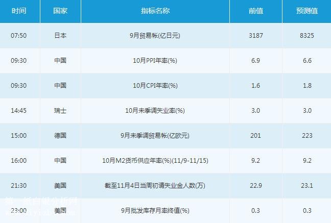 周四(11月9日)亞洲時(shí)段,投資者需關(guān)注07:50公布的日本9月貿(mào)易帳。此后,投資者需關(guān)注09:30公布的中國10月PPI年率、中國10月CPI年率。