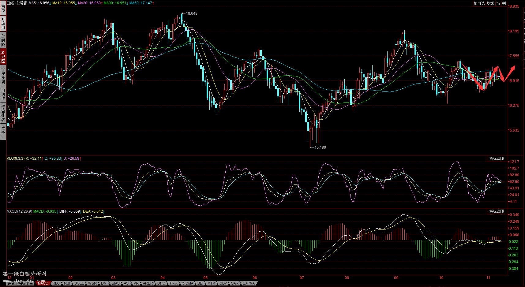 圖:白銀日K線(參考指標MACD)