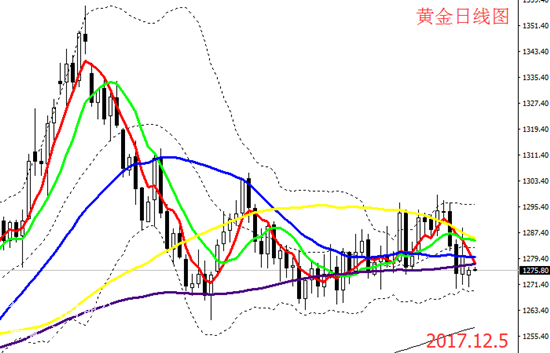國(guó)際現(xiàn)貨黃金周二(12月5日)小幅上探,本周一受到稅改方案的沖擊,金價(jià)跳空低開,最低觸及上周低位1270美元后跌勢(shì)放緩,由于美聯(lián)儲(chǔ)升息前景未顯著改善且國(guó)會(huì)面臨政府停擺危險(xiǎn)等系列問(wèn)題,金價(jià)跌勢(shì)受限。