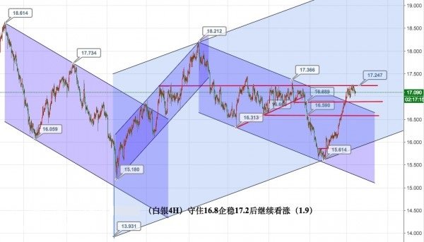 4:和黃金一樣,大周期以13.9為低點結合18.2和15.6形成的上升通道的空間還有很大的上升空間!企穩17.2多頭打開更大的上升空間!