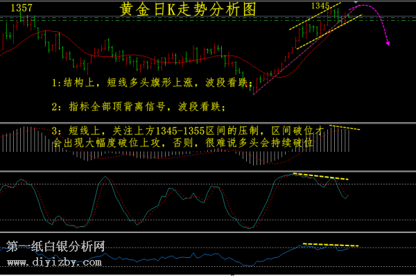 4H圖中,隨機指標高位死叉,這一次,價格無明顯的破位上行,同時RSI指標逐步走低,價格高位整理,但是指標進一步走弱;MACD上面,動能柱出現(xiàn)明顯的頂背離狀態(tài)。4H圖做空為主。