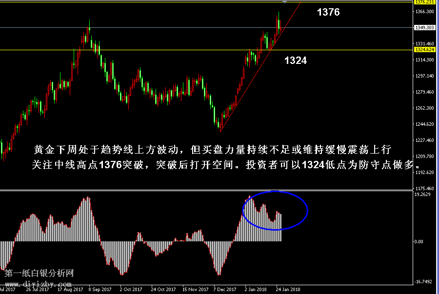 黃金和白銀經歷了一周調整之后,重新回歸上漲,白銀更是在疲軟了長時間后,本周上漲幅度首次超過黃金,由于白銀的投機性更強,因此當銀價漲速超越黃金時,更被視為貴金屬牛市行情的基礎條件。 此前金銀曾遭遇強阻力壓力和買盤減弱情況,但本周調整后金銀各自創出新高,這宣告阻力被突破,且空頭進一步減弱,預計下周黃金白銀將保持上漲形態的概率較大。 下周市場調查黃金白銀將繼續看漲 Kitco 周五(1月26日)發布的每周黃金白銀調查顯示,多數受訪者認為黃金白銀下周將會繼續上漲。在針對華爾街專業人士的調查中,有21人參與了調查,有11人,或52%認為下周黃金白銀將會上漲,8人即38%認為下周黃金白銀會下跌;有2人即10%認為下周黃金白銀將會盤整。市場參與者中包括黃金交易商,投行,期貨交易員及技術分析師。本周參與在線調查的普通投資者有708人,其中436人或62%認為下周黃金仍看漲,同時190人或27%看跌;82人或12%保持中立。 上周看漲金銀的專業人士為71%,普通投資者為61%。截止周五,黃金本周上漲1.3%,最后交易價格為1350.70美元/盎司;白銀價格本周上漲2.2%,最終交易價格為17.36美元/盎司。 2018年到目前為止,不算本周,華爾街和主街的正確率為1比1。2017年,主街預測50次,正確30次,正確率為62%。華爾街的預測者51次,正確30次,正確率為59% (有兩周沒有主街參與,有一周沒有華爾街參與調查)。 另外,據彭博社周四(1月25日)公布的最新調查顯示,絕大多數分析師和黃金交易員仍看漲下周金銀,這也是連續第三周看漲。 在接受調查的20位黃金交易員及分析師中,15人看漲(75%),3人看跌(15%),2人看平(10%)。 投機者:看多黃金升溫 看多白銀降溫 看空美元升溫 美國商品期貨交易委員會(CFTC)周五(1月26日)發布的報告顯示,截止本周:黃金看多意愿繼續升溫,黃金投機性凈多頭增加2973手合約,至214684手合約,表明投機者看多黃金的意愿升溫;白銀投機性凈多頭減少8131手合約,至29081合約,表明投資者看多白銀的意愿降溫;美元投機性凈空頭增加2900手合約,至4173手合約,表明投資者看空美元的意愿升溫。 投機者持有的黃金投機性凈多頭增加2973手合約,至214684手合約,表明投資者看多黃金的意愿升溫。 ![]() ![]() ![]() 瑞士交易所(MKS)交易主管Afshin Nabavi認為,黃金波動的空間幅度將會較大,上行空間在1375美元/盎司左右,下行空間在1345美元/盎司至1340美元/盎司之間;白銀則有望突破18美元/盎司的關口。 Afshin Nabavi說:“美元,盡管有雄辯的話語支撐,似乎正在承受壓力。” “(美國周五的經濟數據)并不是很好。應該逢低買入貴金屬。” Price期貨集團高級市場分析師菲爾弗林(Phil Flynn)認為,由于美元走軟,黃金和白銀將從周五的疲軟中反彈。他表示,盡管隨后出現強勢美元的言論,但市場仍將從美國政府的觀點看問題,短期內仍有利于美元走軟。 Forexlive的貨幣分析師亞當·巴頓(Adam Button)表示:“美元正在掙扎,并將在未來一個月和一周內繼續提振黃金白銀。” 莫里森市場通訊雜志編輯肯·莫里森(Ken Morrison)也預計黃金會出現調整。莫里森“這已經是黃金歷史性的一周了。看漲人氣超過90%,為六年來最高,且本周成交量可能超過2016年11月的紀錄。本周金價已經達到了價格目標,與2017年9月份的頂部相符,填補了價格差距。9月份的時間表也很重要,因為現在美元的情緒非常不利。考慮到黃金和美元的極端情況,下周黃金修正性的回調至1330美元/盎司似乎是最有可能的短期路徑。” 下周美聯儲利率決議和非農強勢來襲 下周市場將迎來美聯儲利率決議和非農兩大重磅事件。 美聯儲利率決議前瞻:分析師將美聯儲下周的貨幣政策會議視為非重大事件。因為這是美聯儲主席耶倫的最后一次會議,央行不會“破壞現狀”,預計美聯儲不會有加息的可能性。 目前調查顯示,美聯儲1月份加息的幾率不到6%。不過,市場認為,3月份加息25個基點的可能性高達75%。市場普遍預計,美聯儲在下周四將按兵不動。 非農前瞻:上月非農數據表現不佳,但本月公布的非農或表現良好。經濟學家預計非農就業人數將增加約20萬人;然而,一些分析師警告稱,整體就業增長不再像薪資增長那樣至關重要。 下周五的就業數據將是下周需要關注的報告,因其將為今年的經濟增長定下基調。 黃金白銀下周仍有望上漲,關注關鍵點位突破 黃金白銀本周在雙雙頂背離的情況下強勢上漲,金價雖然未能修復指標偏離,仍然處于多頭減弱,但價格不斷創出新高的狀態,這說明空頭力量較為疲軟,但多頭不足,可能令金價走出緩慢震蕩上行的格局,這是導致本周黃金較白銀疲軟的原因;銀價經歷調整后已經完成修復,再度上漲已經無頂背離壓制,而多頭力量隨著突破則大幅增強,銀價完成修復后買盤力量強勁,導致本周白銀走勢強于黃金。下周金弱銀強的格局或延續,其中黃金或維持緩慢震蕩上行格局,而白銀則維持較強上漲形態,建議繼續做多。 黃金:如下圖所示為黃金日線走勢圖,圖中紅線所示為金價此前V型反轉以來所形成的上升趨勢線,近期金價連續回踩支撐線后獲得反彈,下周黃金仍然處于上升趨勢線上方運行,因此走勢仍然繼續看漲。但圖中藍色圈所示的動能指標顯示,隨著黃金價格屢屢創出新高,但買盤力量卻未能創出新高,說明多頭快速但并不持續,買盤逐漸消耗后,金價上行能量減弱,或出現調整后再度上漲的情況。下周投資者可以考1324的回調低點為防