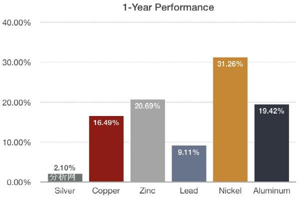 銀既是貴金屬又屬于工業金屬。不管它現在被歸入什么類別,它仍應該處于更高的水平。如果我們剔除GSCI中的石油和天然氣部分基本金屬成分(由于該指數對石油和天然氣的權重很大),只關注GSCI中的進本金屬部分,我們發現銀價仍然遠遠落后于銅、鋅、鉛等工業金屬。