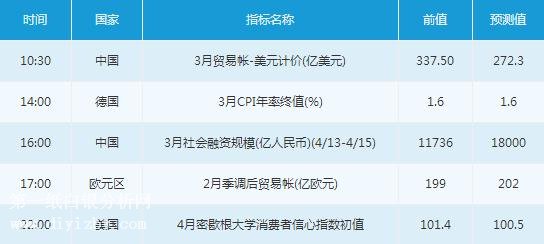 周五(4月13日)亞洲時段,投資者需關注10:30公布的中國3月貿易帳(美元計價)。