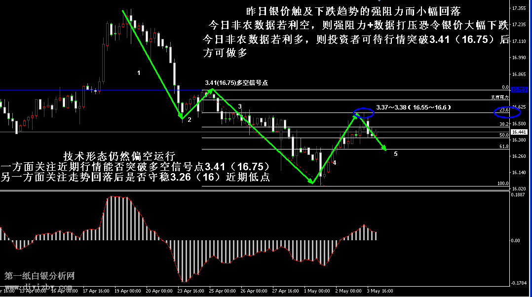 2、以上所有價格為工商銀行買入價,即紙白銀低價。進倉點位要再加點差(各銀行點差不一),出倉則不要。 3、第一紙白銀給出的所有建議僅供投資者參考,不作為下單絕對依據,切勿過于依賴。 4、北京時間09:00發布此文章。 5、上一交易日白銀價格分析情況:(5月3日)白銀暫未止跌企穩 謹防反彈再度遇阻回落