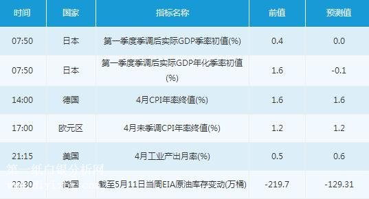 美盤時段,投資者需關(guān)注21:15公布的美國4月工業(yè)產(chǎn)出月率,及22:30的美國截至5月11日當(dāng)周EIA原油庫存變動。