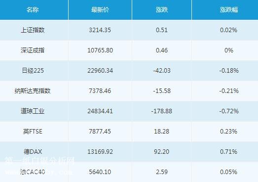 道瓊斯指數(shù)周二收盤(pán)下跌178.88點(diǎn),跌幅0.72%,報(bào)24834.41點(diǎn);標(biāo)普500指數(shù)周二收盤(pán)下跌8.54點(diǎn),跌幅0.31%,報(bào)2724.47點(diǎn);納斯達(dá)克指數(shù)周二收盤(pán)下跌15.58點(diǎn),跌幅0.21%,報(bào)7378.46點(diǎn)。