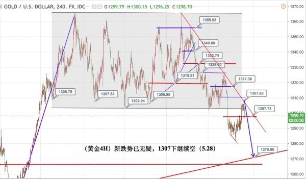 本文作者昨日白銀價格分析請看:5月25日專家點評:黃金空頭仍未走完 見1310再空一次