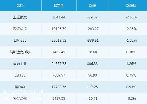 道瓊斯指數(shù)周三收盤上漲306.33點(diǎn),漲幅1.26%,報(bào)24667.78點(diǎn);標(biāo)普500指數(shù)周三收盤上漲34.15點(diǎn),漲幅1.27%,報(bào)2724.01點(diǎn);納斯達(dá)克指數(shù)周三收盤上漲28.60點(diǎn),漲幅0.38%,報(bào)7462.45點(diǎn)。